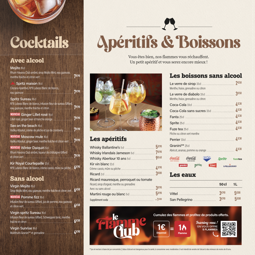 At Courtepaille, a charming French steakhouse conveniently located just off the highway in Pouilly-en-Auxois, the menu is a delightful celebration of rustic flavors and hearty fare. Begin your culinary journey with inviting Les entrées, featuring the rich Terrine courtepaille Forestière paired with tangy comichons, and the classic Oeuf mayonnaise infused with Courtepaille mustard. The centerpiece, La Cocotte, showcases the tender Souris d'agneau served with buttery coquillettes, a dish that promises to warm the soul.